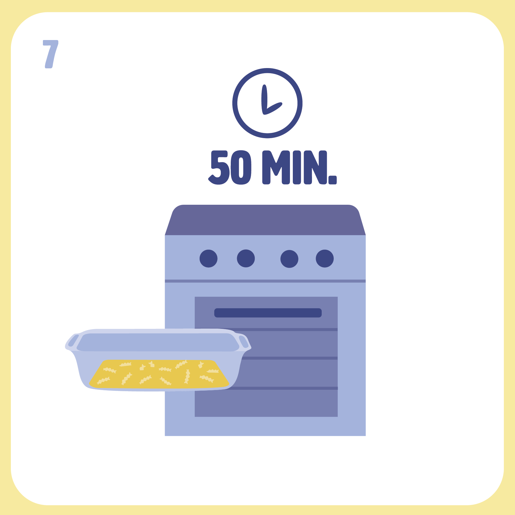 This instructional graphic explains how to make the Jewish brunch food, noodle kugel. It includes a limited color palette and limited written instruction for a simplified take on a multistep process.